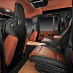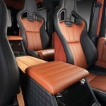 The interior of the vehicle has been covered in dark brown and black Nappa and Alcantara leather. The leather features on the doors, the dashboard, the new sport seats, the grips on the headliner and the sun visor. Alacantra even appears on the exterior covering the rear view mirror and the third brake light.